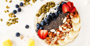 Place smoothie ingredients in your highspeed blender and blend until smooth. Pour into a bowl, add your toppings, and devour! For the toppings, try sliced fresh fruit, nuts, additional chia seeds, chocolate chunks or nut butter.