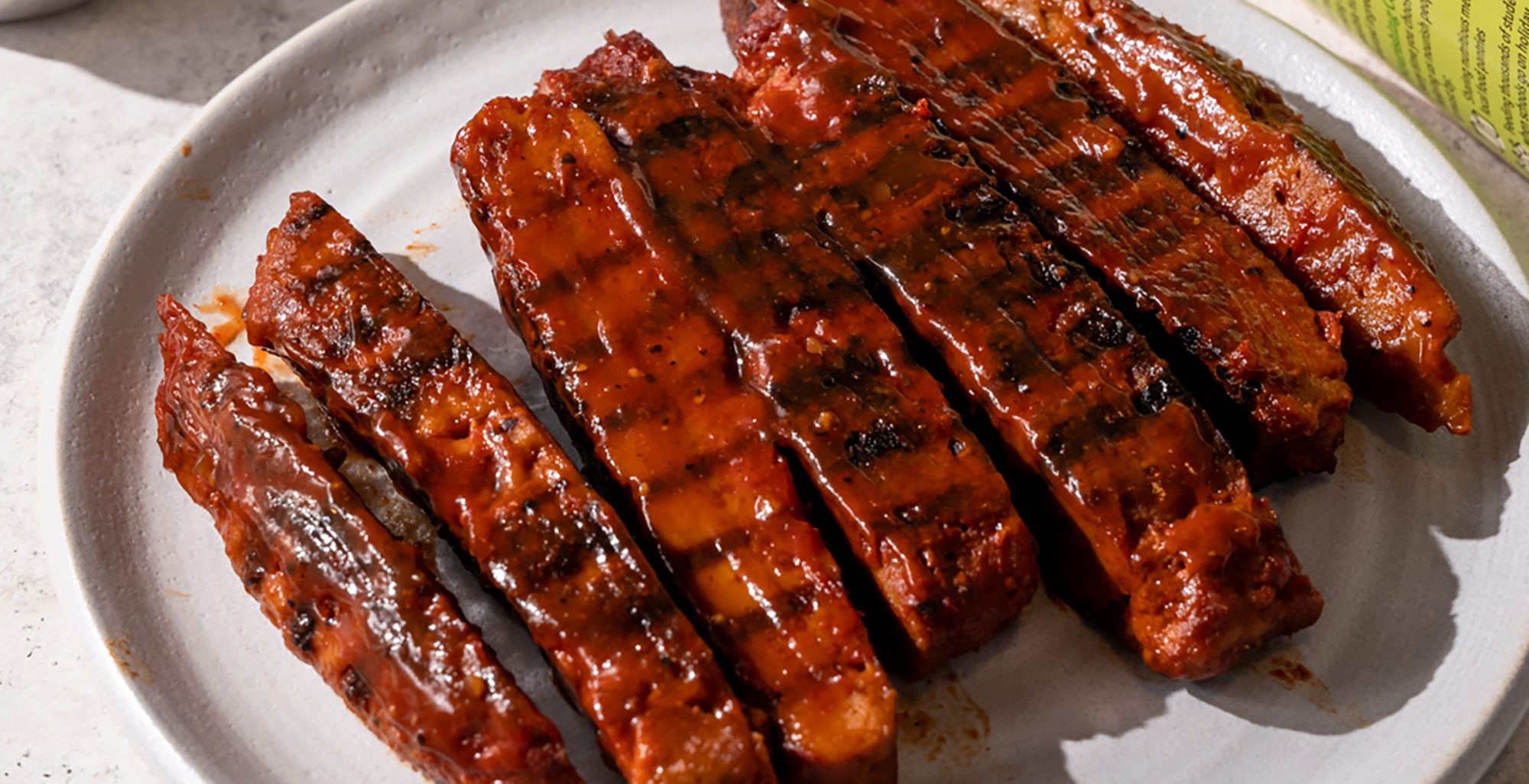 Lightly oil a grill rack or grill pan and heat over medium-high heat.  Grill the "ribs" until there are grill marks on both sides.  Brush with the remaining 1/2 cup barbecue sauce and grill for another 5 minutes.  Serve with additional barbecue sauce, if desired.