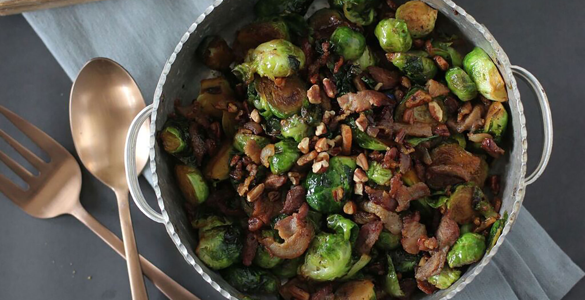 Add Brussels sprouts to the hot grease in pan and toss to coat. Let Brussels sprouts sit for a minute to brown and get a good and crisp, roughly 1-2 minutes. Repeat until Brussels sprouts are crisp and brown on the outside.