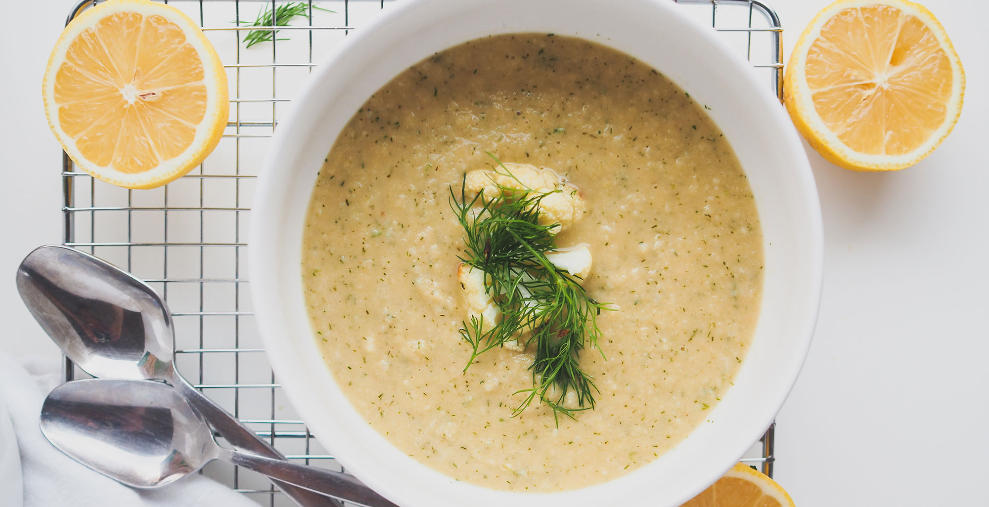 In a stock pot, heat the remaining olive oil over medium heat. Add the leek and saute for 3 minutes, then add the garlic and celery seed powder. Cook for 30 seconds before adding the roasted cauliflower, remaining dill, and broth. Bring to a simmer, add the beans, and bring to a simmer again.