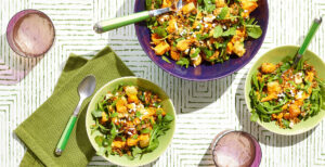 Toss together cooked farro, roasted vegetables, arugula, feta, mint, and half of the harissa dressing (about 2 tablespoons) in a medium bowl until coated. Drizzle with remaining harissa dressing (about 2 tablespoons); garnish with additional feta and mint.