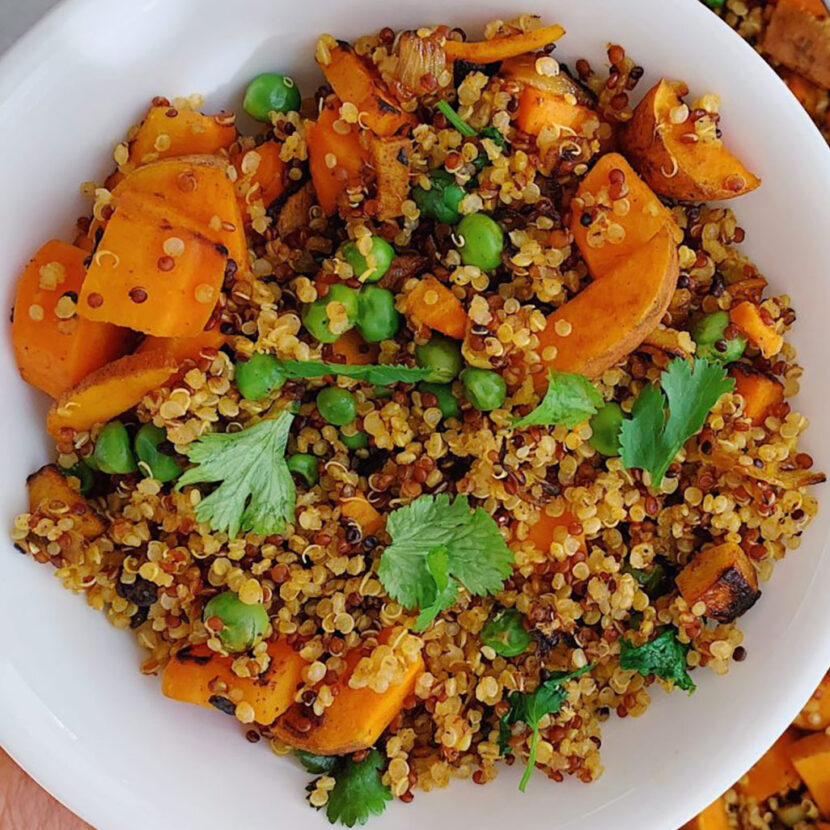 Quinoa Grain Bowl with Mushrooms, Sweet Potato and Kale