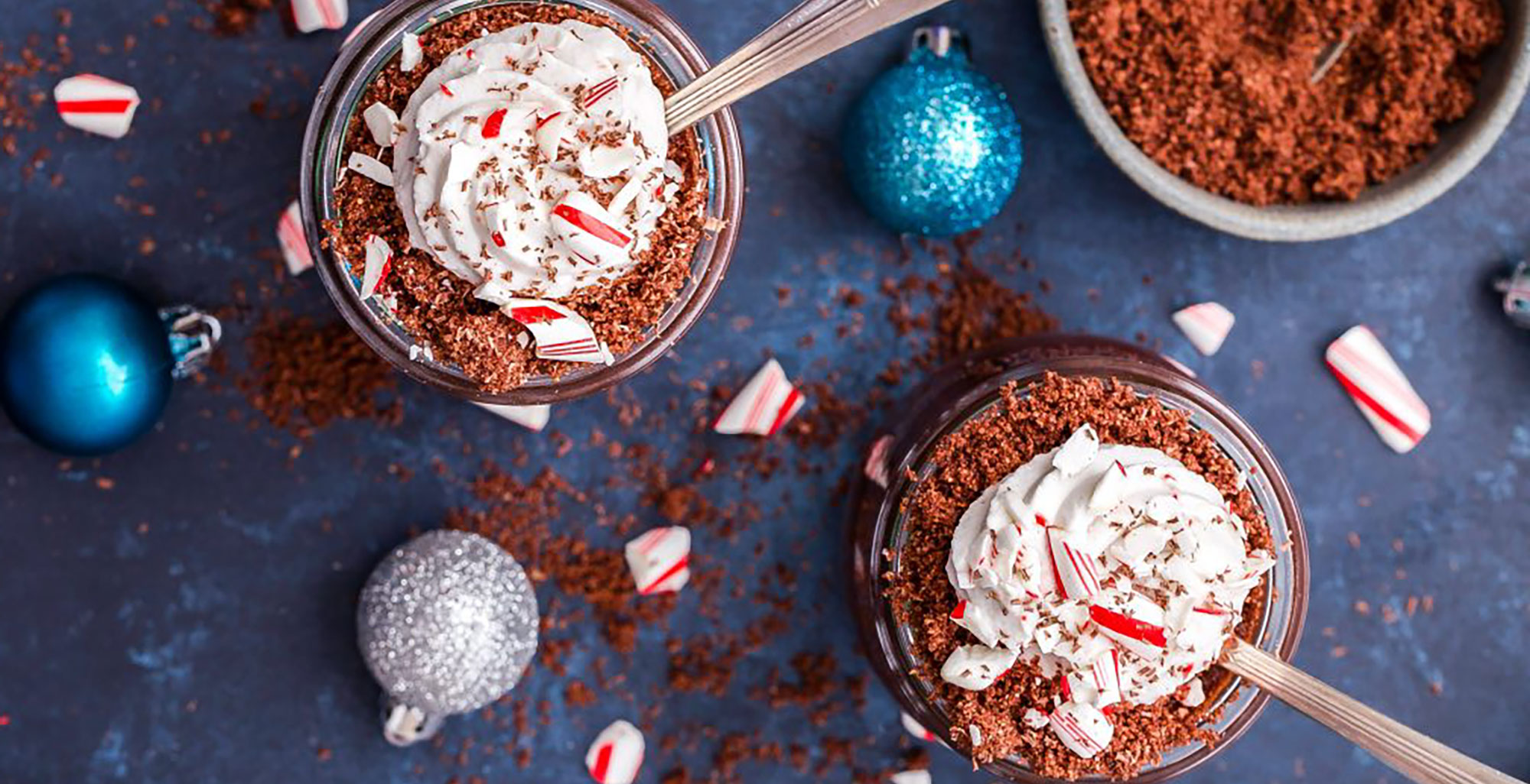 Divide half the graham cracker mixture among 8 glasses.  Top with half the pudding.  Repeat with the remaining graham cracker mixture and pudding.  Top with the whipped topping and sprinkle with the crushed candy canes.