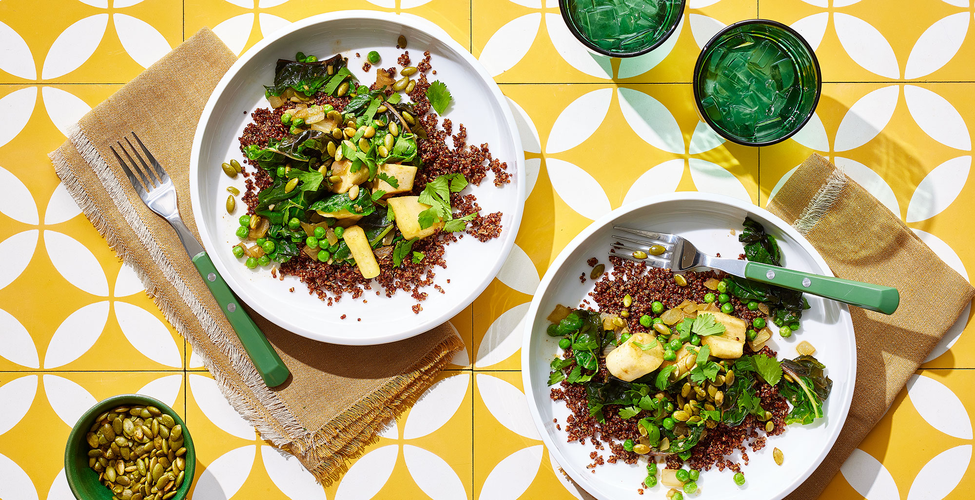 Well-balanced and bursting with fall goodness, this grain-based dish layers earthy root veggies, leafy greens, and warm spices with quinoa made extra fluffy and flavorful from cooking in Pacific Foods® Organic Low Sodium Vegetable Broth. Top off your bowl with some fresh cilantro and toasted pepitas for extra brightness and crunch.